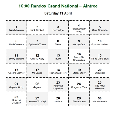 A maximum field of 34 will contest the Randox Grand National at Aintree on Saturday April 11 at 4pm.